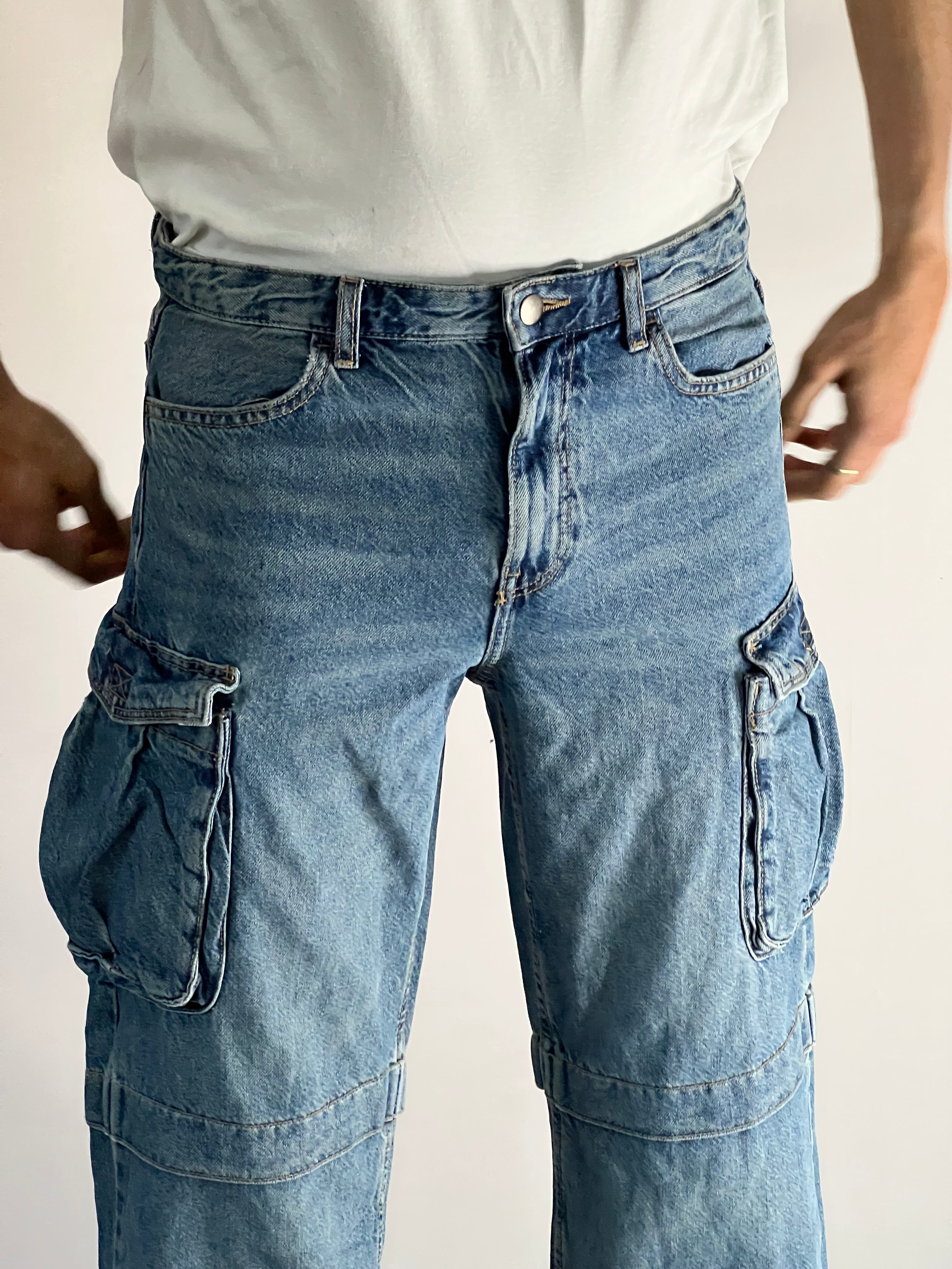 Multiple flap cargo pockets enhance both practicality and style, while the high-rise waist creates a flattering, elongated shape.