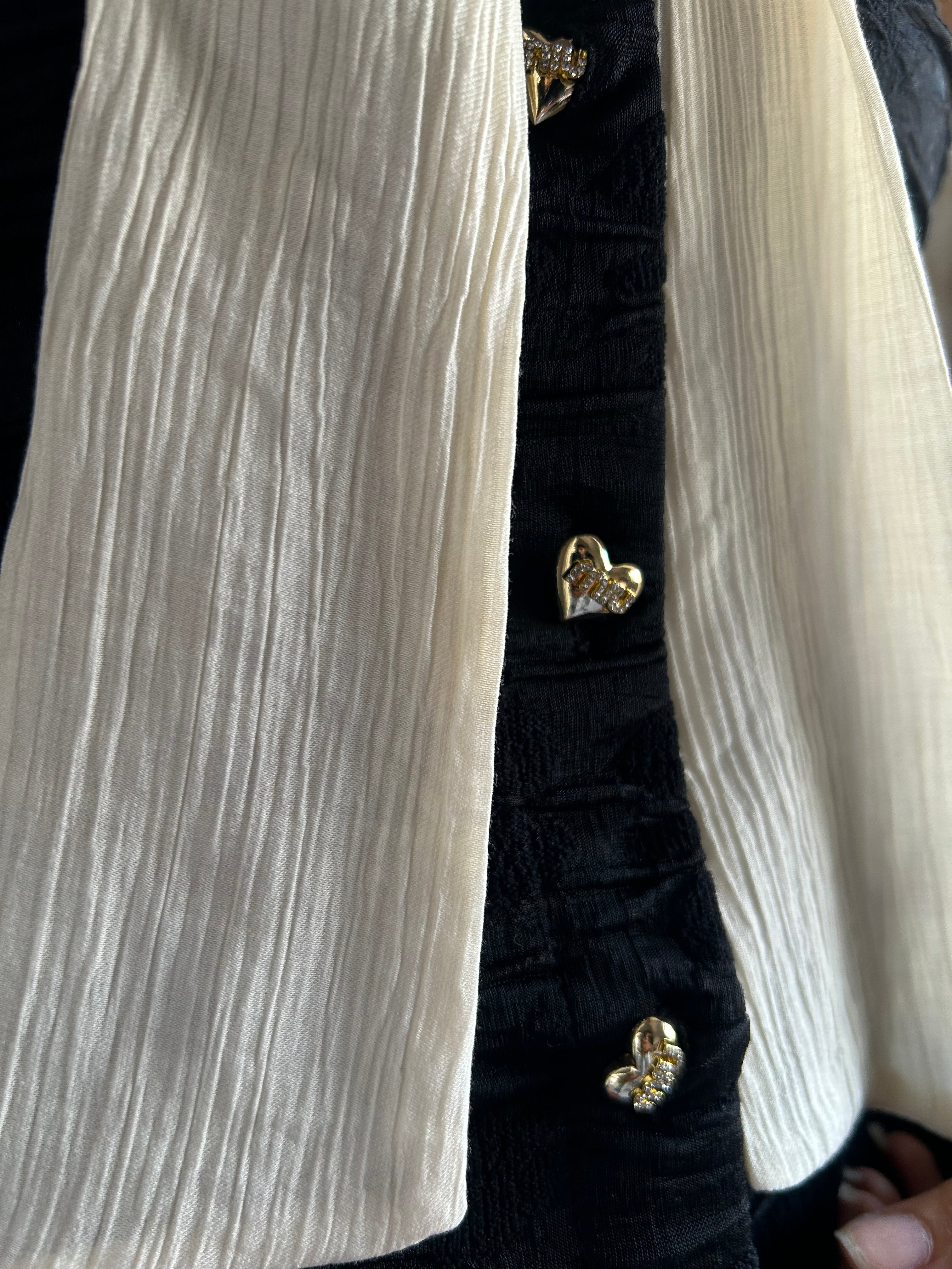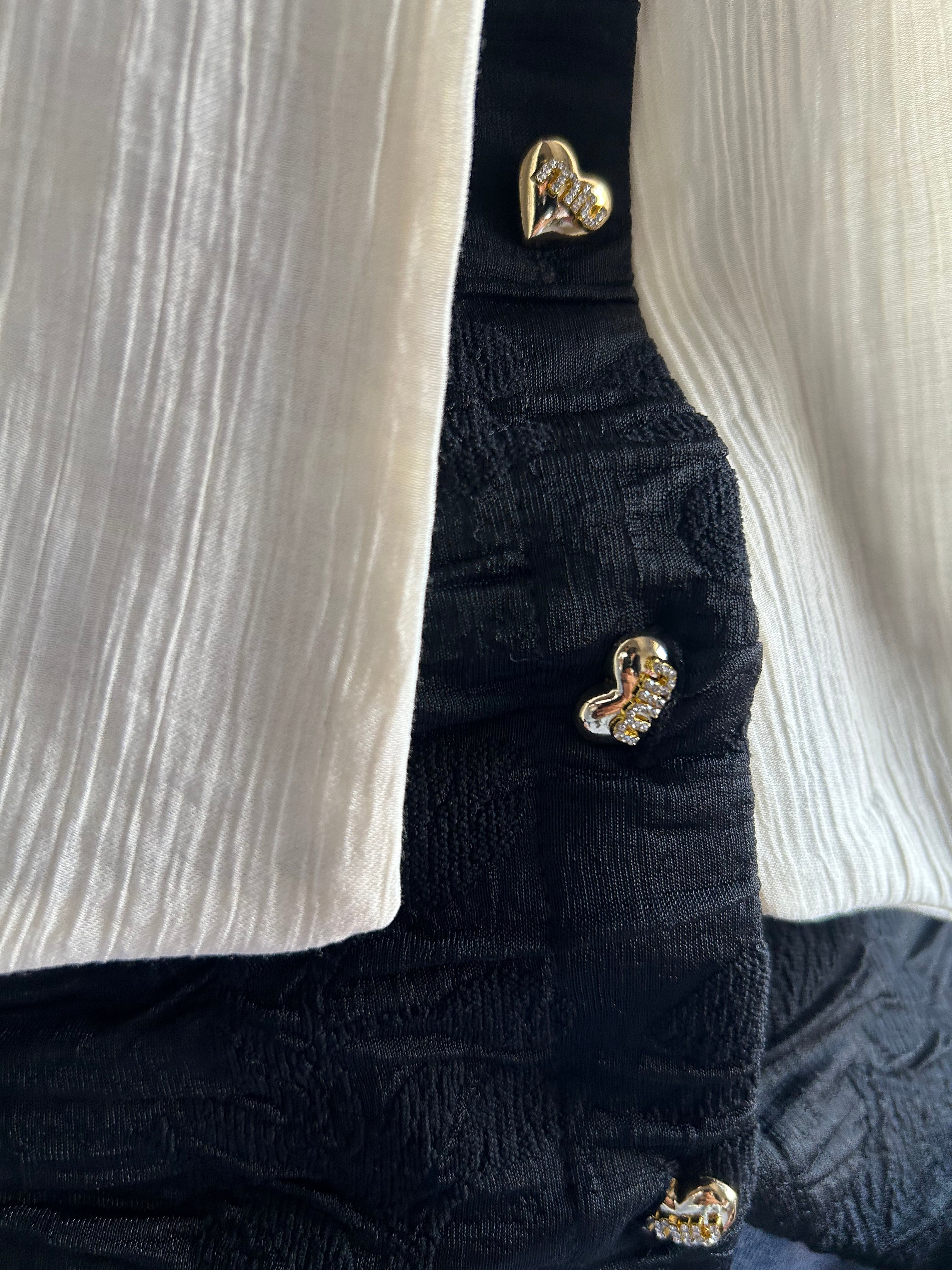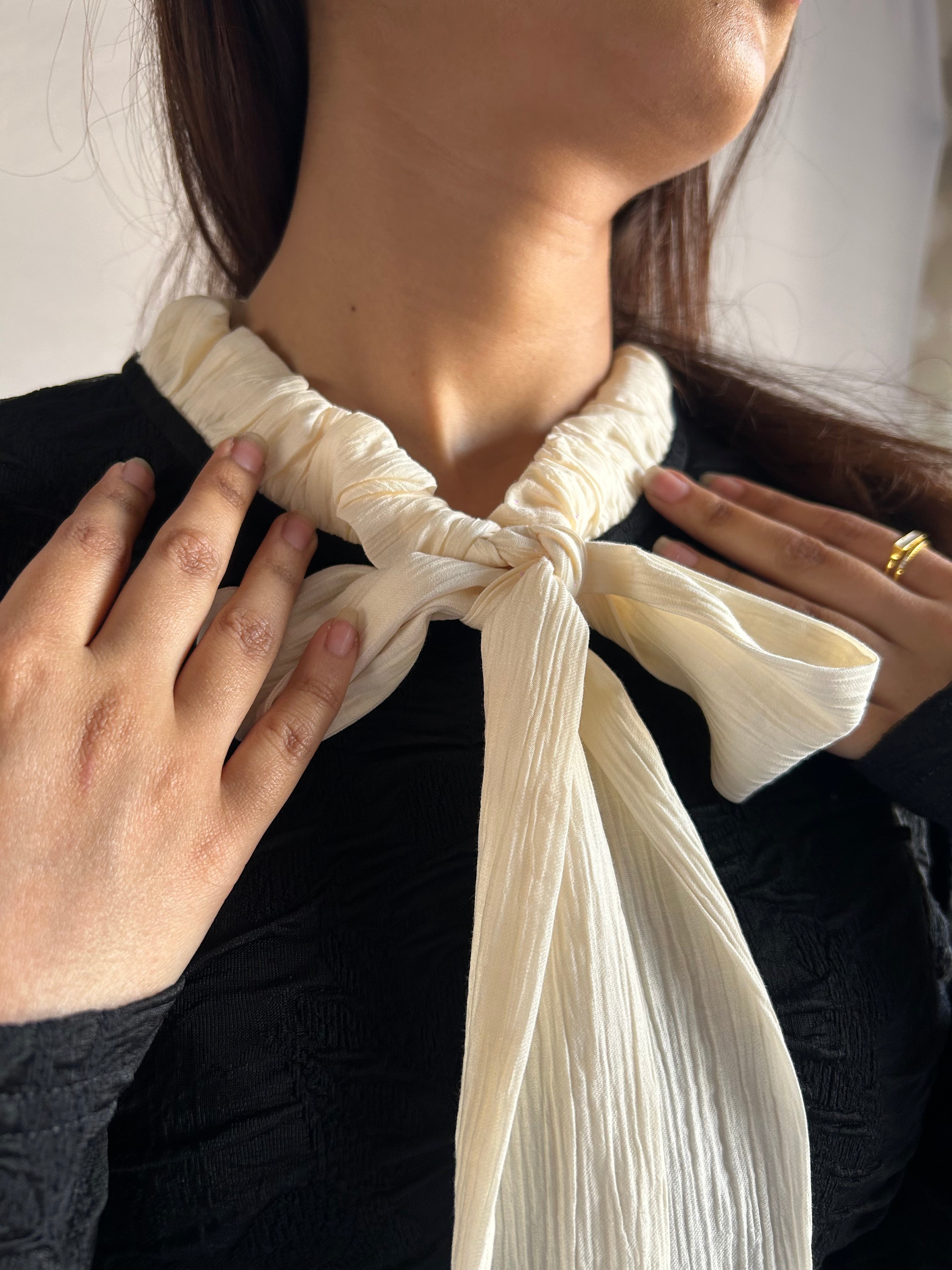 Fitted top featuring a textured finish with a round neckline and contrasting tie detail. Designed with long sleeves and a structured silhouette for a flattering shape.