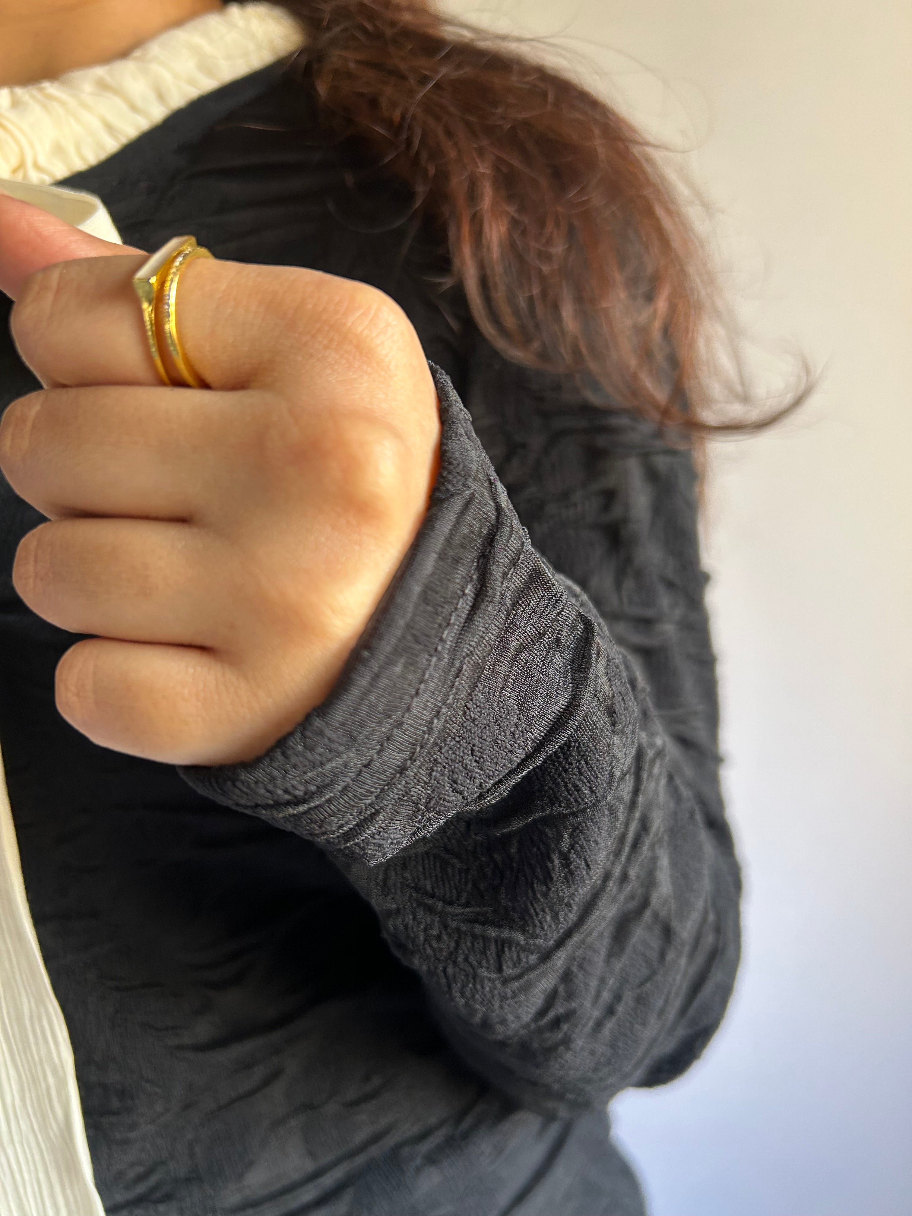 Fitted top crafted from textured fabric with subtle stretch for enhanced comfort.